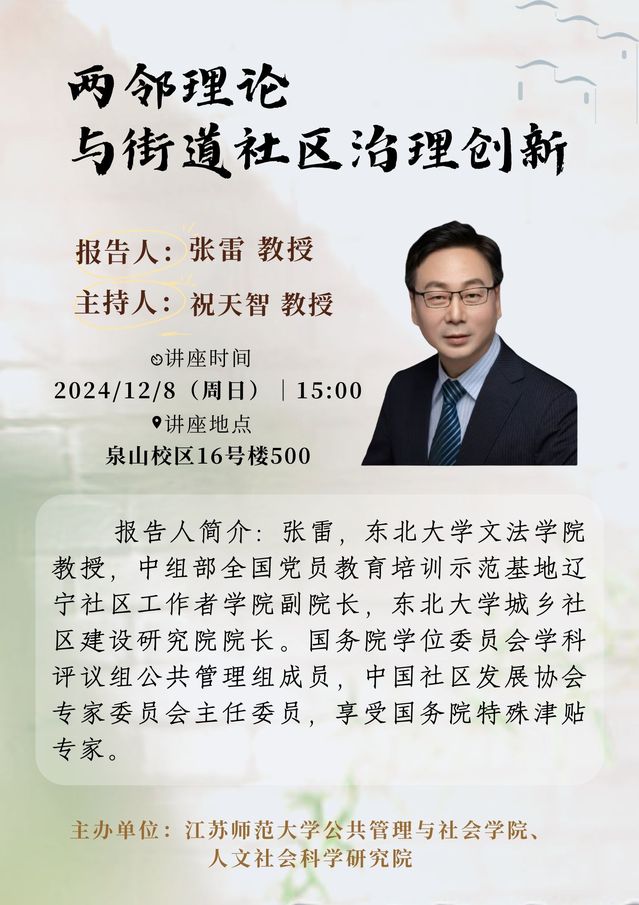 12月8日 张雷教授学术讲座(公共管理与社会学院)