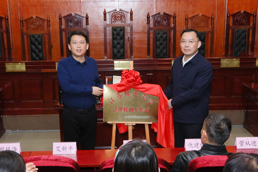 为积极贯彻落实中共中央社会工作部、教育部、司法部《关于加强高校法律援助志愿服务工作的意见》,法学院与铜山区法律援助中心持续加强交流合作,该中心在我校设立了法律援助工作站。活动期间,校党委常委、纪委书记闾浩和徐州市司法局党组书记、局长艾新平共同为工作站揭牌。