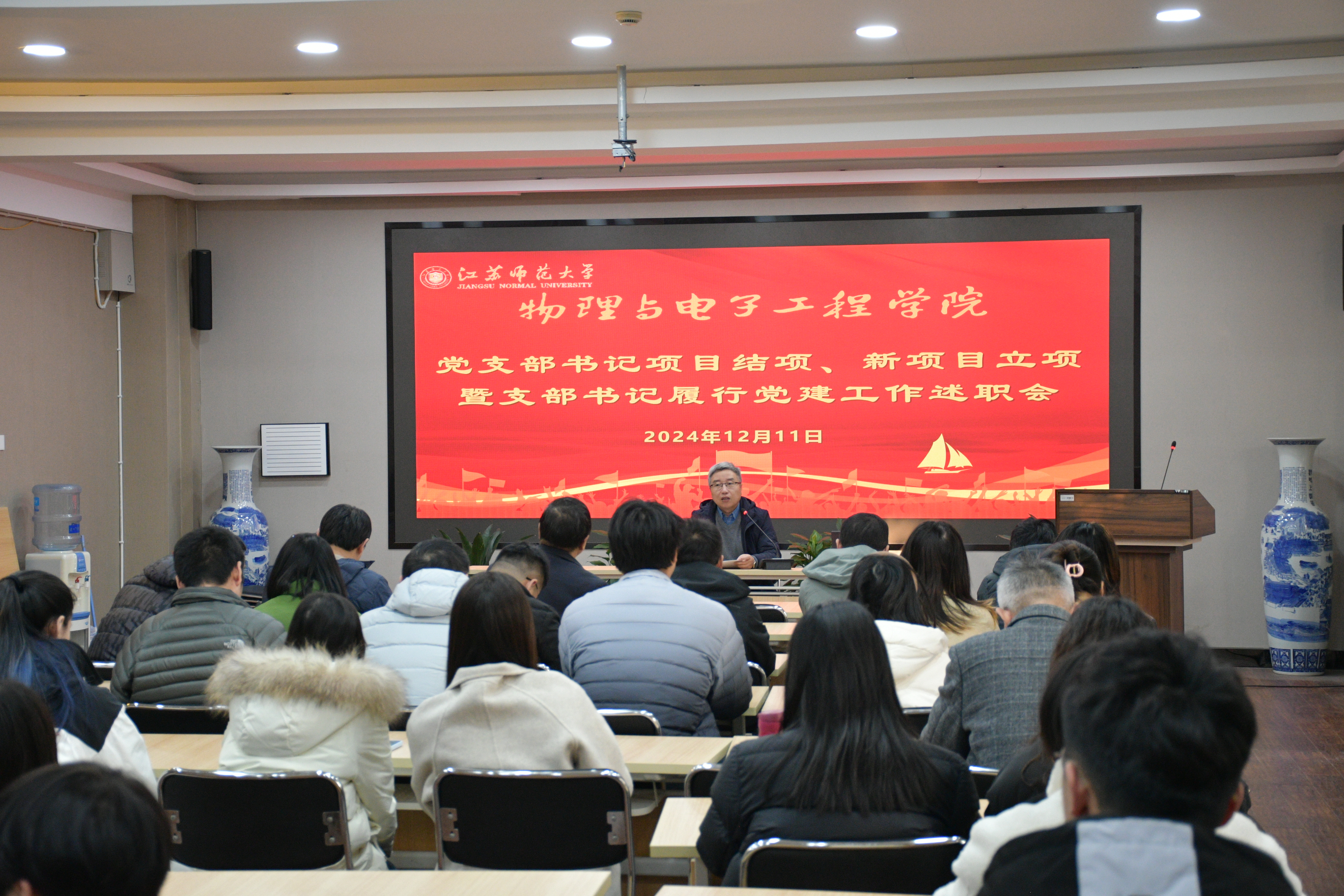 为深入贯彻落实新时代党的建设总要求和新时代党的组织路线,认真执行《中国共产党普通高等学校基层组织工作条例》,切实提升基层党支部党建工作质效,12月11日下午,物电学院召开党支部“书记项目”结项、新项目立项暨支部书记履行党建工作述职会。会议由院党委书记王夫寿主持。