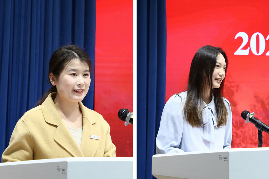 获得奖学金的研究生代表文学院张莹莹同学、本科生代表法学院邓奚缘同学分别发言,表达了对江苏省教育基金会的谢意,并结合自身学习实践等经历分享了获奖感悟。他们表示一定会珍惜社会和学校给予的鼓励,坚定理想、勤奋学习、敢想敢为、善作善成、立志成才、回馈社会。