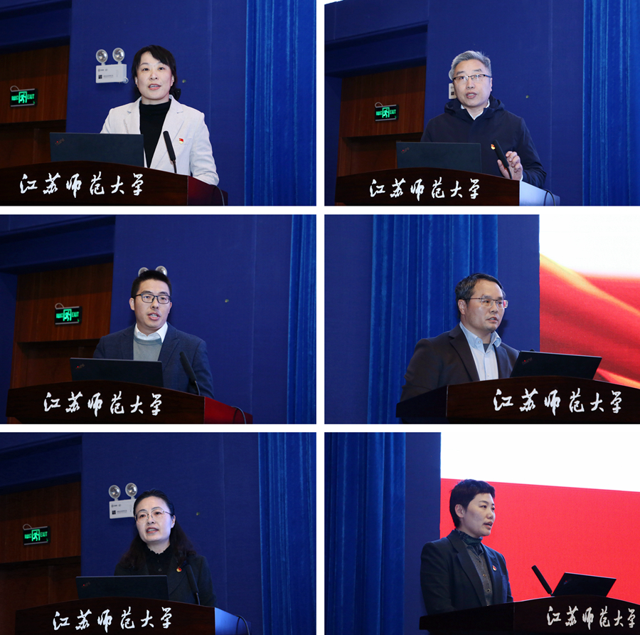 “2024年度党委理论学习中心组示范点”获奖代表、电气工程及自动化学院党委书记潘震鑫,“党委理论学习中心组成员专题调查研究优秀调研报告”获奖代表、物理与电子工程学院党委书记王夫寿,“全省高校‘双带头人’教师党支部书记‘强国行’专项行动团队”代表、化学与材料科学学院教工一支部支部书记姜波,“江苏省课程思政典型案例(专业)”获奖代表、语言科学与艺术学院副院长朱祖德,思政课教师代表匡艳丽,网络思想政治工作代表、党委宣传部宗倩等6位同志,在大会上交流汇报了工作经验与心得体会。