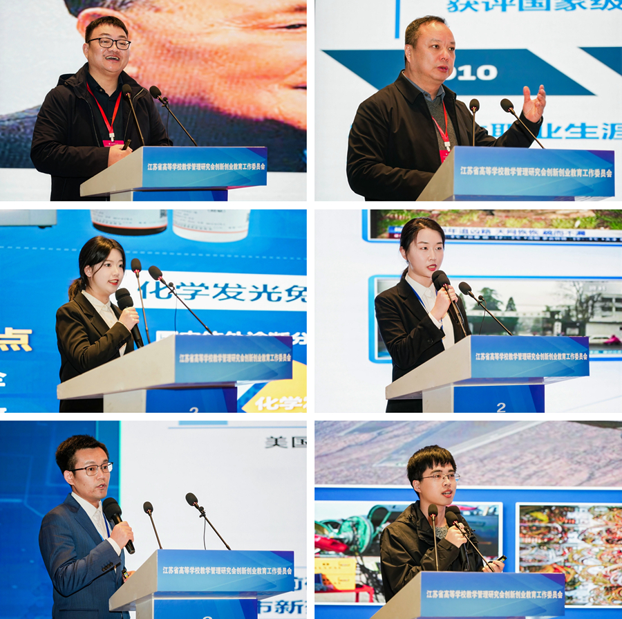 本次年会还特别增加了江苏省国赛金奖项目交流环节,南京航天航空大学、苏州大学、中国药科大学、江苏食品药品职业技术学院在总决赛小组路演评分中获得第一的项目进行了参赛经验、收获分享。