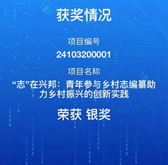 经过激烈的角逐,由我院田振华老师、乔子芮老师指导的项目《“志”在兴邦:青年参与乡村志编纂助力乡村振兴的创新实践》荣获银奖。