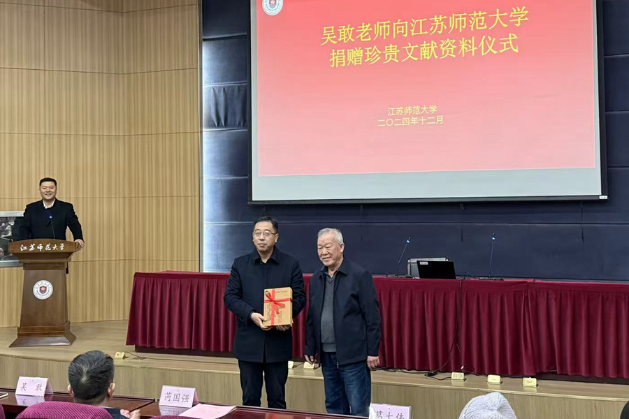 近日,我校在西教2号楼学术报告厅举行珍贵校史资料捐赠仪式。我校杰出校友、徐州教育学院原党委书记、院长吴敢及其夫人李芳荣向我校捐赠珍贵校史资料,校党委书记芮国强出席活动,文学院师生代表100余人参加活动。
