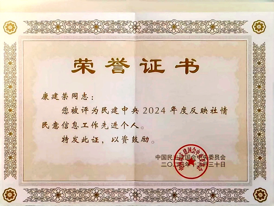 多年来,康建荣教授充分发挥政协委员参政议政职责,积极建言献策,多篇信息被民建中央、省委、省政协、市政协等采用,为政府科学决策提供了有力支撑,为推动学校与地方经济社会的深度融合与协同贡献力量。
