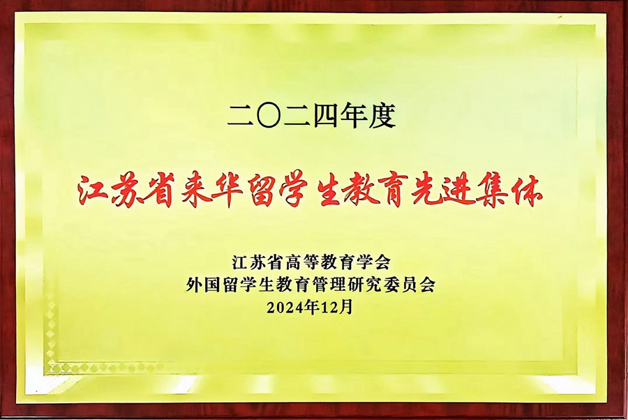2024年12月29日至31日,江苏省高等教育学会外国留学生教育管理研究委员会年会在无锡召开。大会上对来华留学生教育先进集和个人进行了表彰,我校获江苏省“来华留学生教育先进集体”称号,这是我校第五次获此殊荣。我校国际学院甄宇彤老师被授予2024年度江苏省“外国留学生教育管理先进个人”、王晓蒙老师被评为2024年度江苏省“优秀留学生辅导员”。