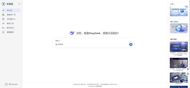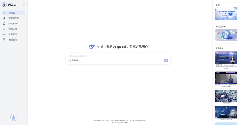 注意:通过CARSI访问“浙大先生”,除DeepSeek服务外,其他服务是否可用遵从浙江大学方面的开放范围和具体规则。