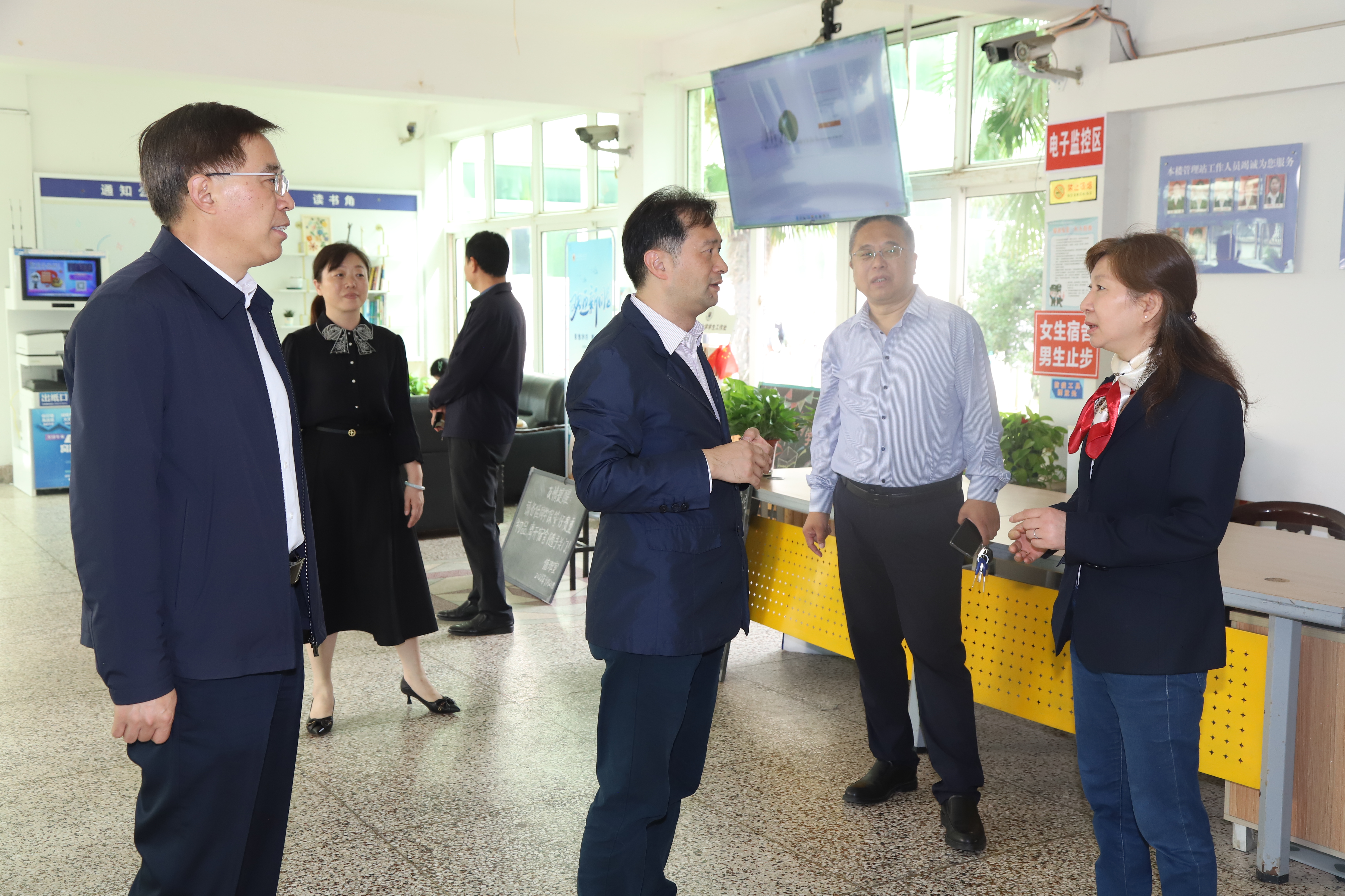在公寓三组团,张校长对公共区域设施、消防设施、电器设备、卫生状况等方面进行检查,与公寓管理人员、服务人员进行交流,了解公寓管理工作的运行情况和服务质量,对于管理和服务方面发现的不足,及时提出了指导意见和建议。同时,还就学生管理和服务方面进行指导和部署,要求要确保学生公寓的安全、有序和高效运转。