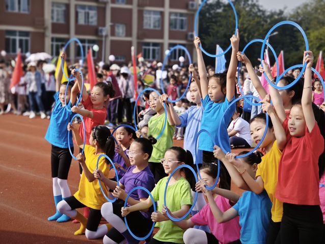 秋日的暖风轻拂着校园,运动的热情洋溢在风中,璀璨的荣誉在烈日下生辉,炽热的气息在绿茵场上回荡,蔚蓝的天空与红色的跑道交相辉映,组成灿烂童年的乐章。学子们从竞技体育中汲取着拼搏精神,一路奋进,一路高歌,阔步走向奋斗而来的美好明天!