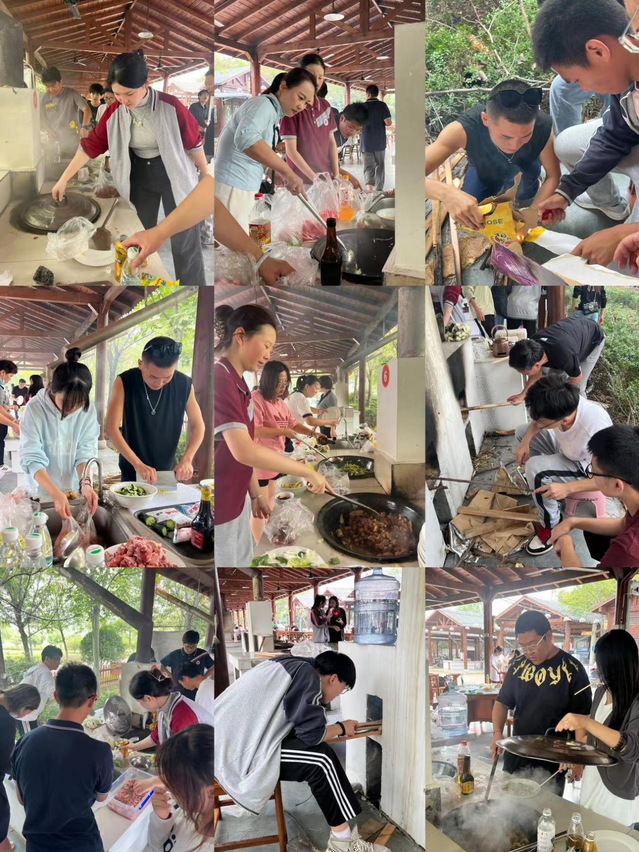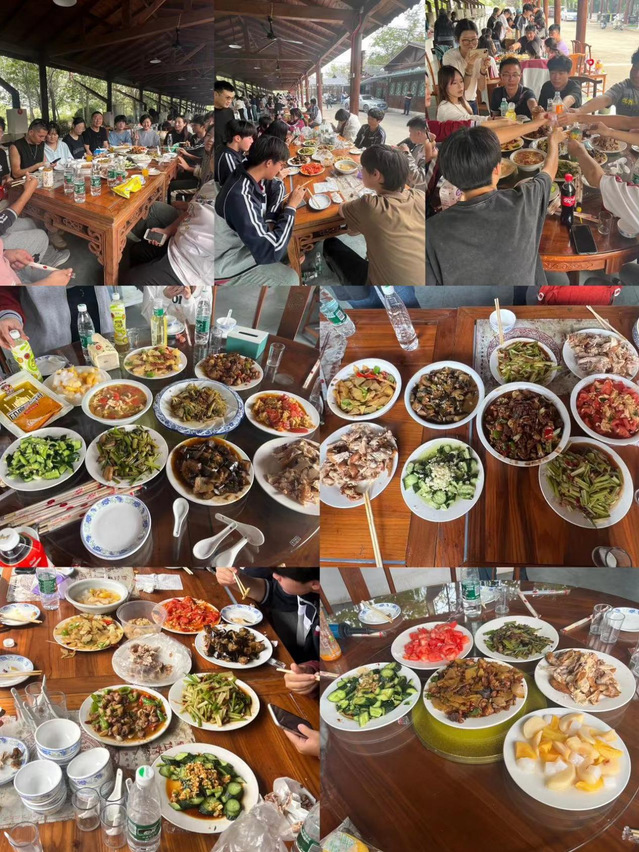 各班在家长的帮助下,各司其职,大显身手。生火,洗菜,加工食材,准备碗筷......在同学们互相帮助及与家长的默契配合下,不久就将一道道可口的饭菜端上餐桌。