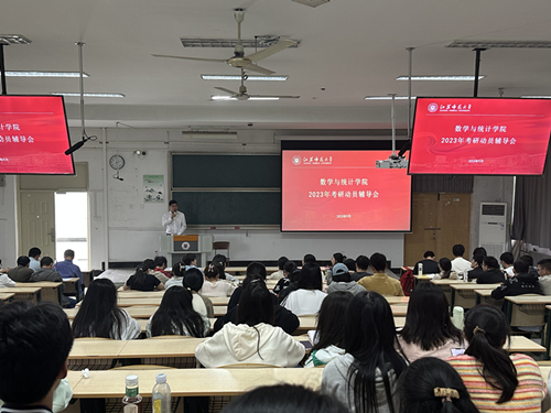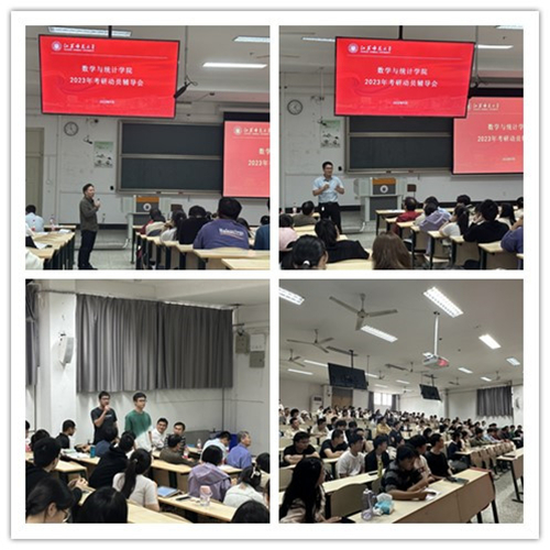 为帮助考研学子进一步理清思路,找准定位,明晰目标,提升考研竞争力,9月27日下午,数学与统计学院在17#300A召开2023年考研动员辅导会。学院统计学科带头人、统计学导师组组长谢颖超,副院长刘江、李建波,信息与计算科学系主任刘剑明,数学系教授张孝金出席会议,学院2020级和2021级学生参加会议。会议由院党委副书记谭建东主持。