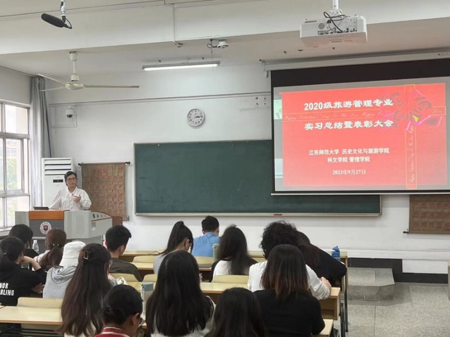 金秋九月丹桂飘香,历史文化与旅游学院2020级旅游管理专业实习的总结暨表彰大会于2023年9月27日周三下午两点在泉山17#302、科文教2北106隆重举行。此次大会通过腾讯会议实现历旅学院以及科文学院管理学院的线上联动。历旅学院刘德州院长、科文学院管理学院李锦生院长、旅游系全体实习指导教师以及泉山和科文2020、2021级旅游管理专业全体学生出席了本次会议。本次大会由旅游系主任王欣主持。
