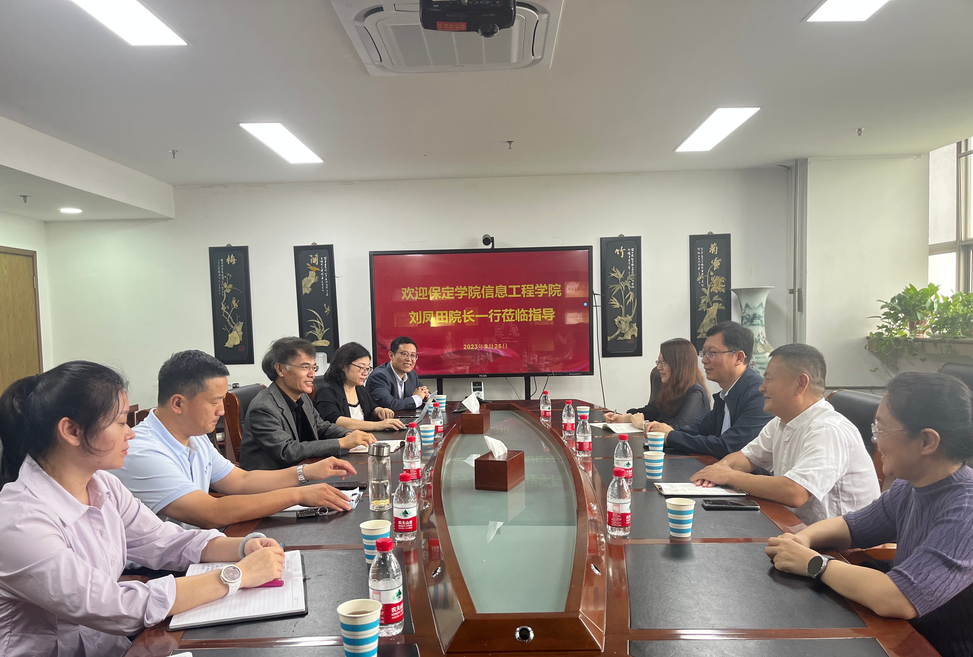 2023年9月25日,保定学院信息工程学院刘凤田院长及教育技术专业的老师代表一行来智慧教育学院进行交流学习。智慧教育学院书记周显洋、教学副院长李子运、副书记武悦、安涛教授参与座谈。
