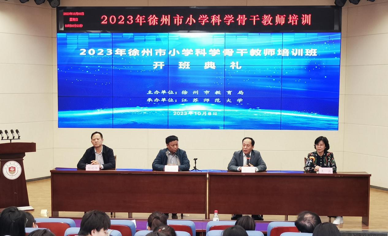10月8日上午,徐州市小学科学骨干教师培训班开班典礼在江苏师范大学13号楼106报告厅举行,参加开班典礼的领导有徐州市教育局教师工作处李进强处长、江苏师范大学教育科学学院(教师教育学院)高伟院长、徐州市教育科学研究院程廷伟副院长。开班典礼由徐州市教育科学研究院教研员王波老师主持。