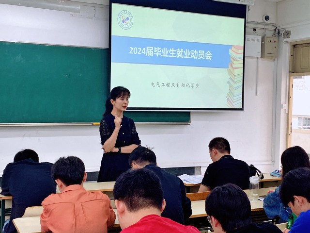 9月27日下午,电气学院在17#305教室召开2024届本科毕业生就业动员暨考研动员大会,院党委副书记李荣婧、就业辅导员杨梦晨参加会议。