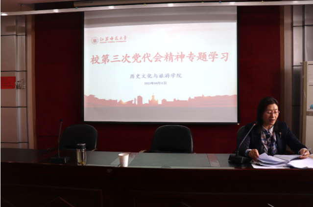 为深入学习贯彻落实学校第三次党代会精神,以大会精神统一思想、统一意志、统一行动,2023年10月11日,历旅学院在402报告厅召开全体教职工大会,专题深入学习贯彻落实学校第三次党代会精神。会议由院党委书记戚洪主持,全体教职工参加。