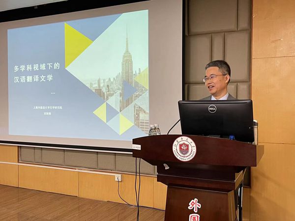 在讲座中,宋炳辉教授从外语学科的发展入题,指出翻译文学具有普遍性、特殊性和多学科性的特征。它不仅是翻译学的研究对象,还是国别文学、比较文学的重要组成部分。宋炳辉教授认为,翻译文学与中国现代文学、外国现代文学、比较文学和翻译学等学科之间有着紧密的联系。宋炳辉教授从内部特征与外部特征两个方面分析了中国现代文学与传统文学的区别,指出现代文学从根本上离不开翻译文学,没有翻译文学就没有中国现代文学的现状。翻译文学不仅影响了中国现代文学,自身也构成中国现代文学不可分割的一部分。翻译文学虽然是以中文呈现的作品,但也是外国文学的一部分。翻译文学研究已经成为中外国别文学、比较文学、翻译学等不同学科共同关注的热点领域,出现了文化翻译学—译介学理论、中外文学关系研究、翻译文学史等领域一大批学术成果。宋炳辉教授强调,从中外文学文化关系的角度考察汉语翻译文学,对于外语学科的当下发展具有重要的参考意义。