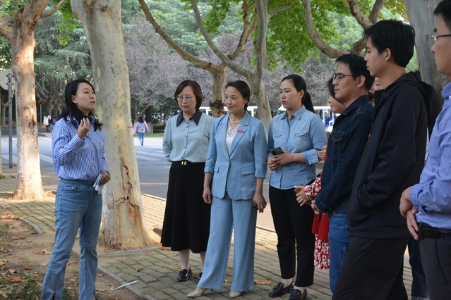师者,人之模范也。 10月11日下午,学院党委组织青年教师参观学校教育名言石刻园,活动由院党委尹燕萍书记主持,院党委副书记刘洁和近两年入职的青年教师参加了此次活动。