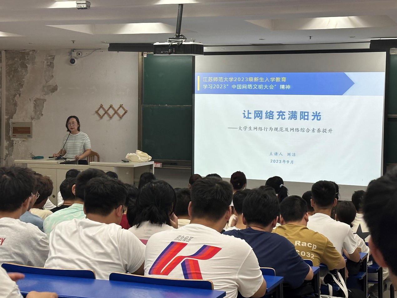 地理测绘与城乡规划学院党委刘洁副书记为我院新生开展了以“让网络充满阳光”为主题的专题讲座。本次讲座主要分为中国网络文明大会、案例、重新认识网络媒介、如何合理表达诉求等四个板块。刘书记首先向大家介绍了“中国网络文明大会”,帮助大家了解国家层面对网络文明建设的重视与布局。随后,她结合案例,为新生系统讲解了网络安全知识,强调了学习网络安全知识的必要性。接着,刘书记指导大家从正确认识网络媒介,提升自己的媒介素养。此外,她还指导大家通过合理途径和方式表达诉求,她强调,网络与大学生密切相关,同学们要规范上网、传播网络正能量。