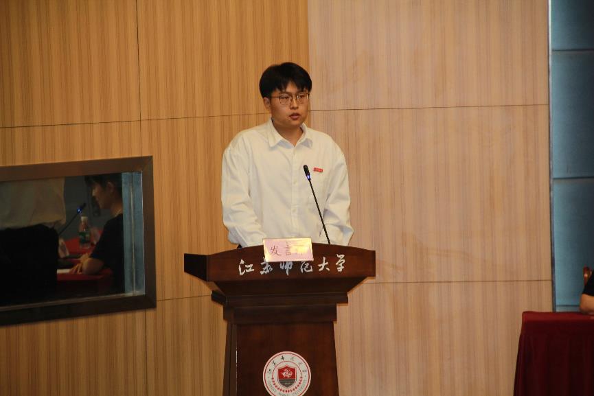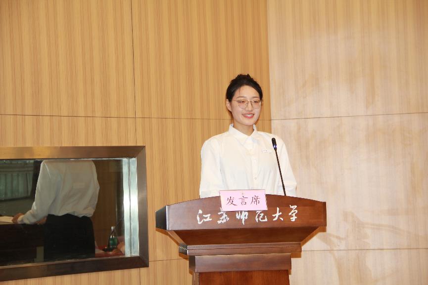 2023级人工智能专业陈圆圆同学代表本科新生发言,她回忆了自己的高考岁月和初入江苏师大的感受,并表示在追梦旅程的起点上要转变角色、适应生活、珍惜时光、刻苦学习、勇于实践、开拓创新,成为更好的自己。