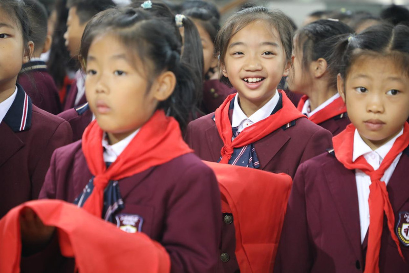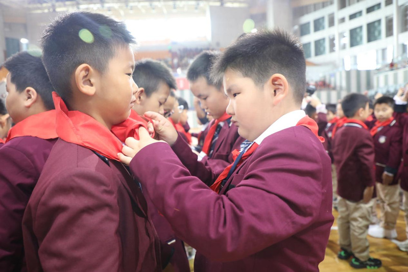 红色领巾,代代相传。老队员们郑重地为新队员佩戴红领巾,二年级193位新队员正式加入中国少年先锋队。队旗下,少先队员们庄严宣誓:我热爱中国共产党,热爱祖国,热爱人民,好好学习,好好锻炼,准备着:为共产主义事业贡献力量!铿锵有力的誓言,让队员们感到无尚的光荣,责任感和使命感油然而生。