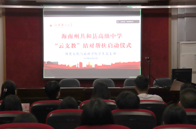为进一步拓宽师范生实践锻炼平台,以专业所学助力地方教育发展,2023年10月13日,历旅学院与青海省海南州共和县高级中学以线上线下相结合的方式开展了“云支教”结对帮扶启动仪式。学院党委副书记叶慧,共和县高级中学党支部书记、校长马文成,教务主任仁青卓玛以及学院学生党支部书记、全体结对学生参加了本次仪式。