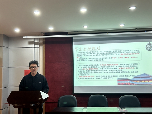为引导广大学生科学规划学业和提升职业准备度,充分发挥职业规划大赛的积极作用,历史文化与旅游学院于10月12日下午17时在学院402教室开展第十届大学生职业规划大赛选拔比赛。院党委副书记叶慧老师、辅导员王桃、王亦男、赵宇、于雯静、周鑫担任评委。比赛由赵宇老师主持。