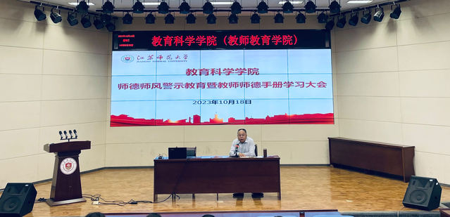 为全面学习贯彻党的二十大精神,落实立德树人根本任务,增强广大教职工的责任感、使命感,规范职业行为,明确师德底线,10月18日下午,教育科学学院在13号楼106报告厅举行“师德师风警示教育暨教师师德手册学习”大会,会议由院党委书记张欣主持,学院全体教职工参加。
