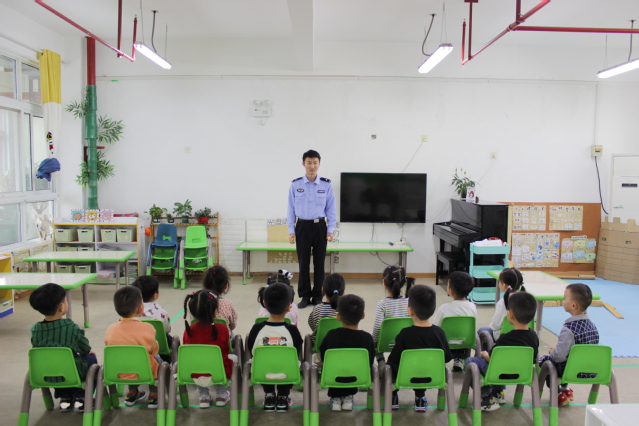 马警官与孩子们亲切的互动,孩子们聚精会神地倾听,当马警官提问时,孩子们都争先恐后的举手回答。安全无小事,防患于未然,我园会继续抓牢校园安全教育、法制教育,让孩子们从小树立法律意识,在安全法制的环境中健康成长。
