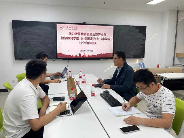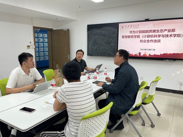 2023年10月17日下午,智慧教育学院(计算机科学与技术学院)祝义副院长、软件工程系主任宋媚在静远楼913接待了华为技术有限公司鲲鹏计算产品线、鲲鹏生态发展部、生态发展总监严伟一行。华为江苏鲲鹏·昇腾生态创新中心生态总监孙乾凯、软件工程系教师赵礼出席了本次洽谈会。
