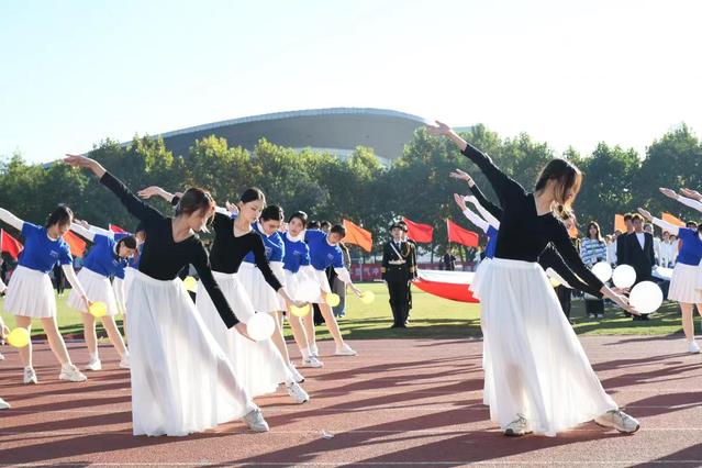 青春展风采,运动向未来。2023年10月20日上午8时,校第五十七届田径运动会在泉山校区田径场拉开序幕。开幕式上,外国语学院方阵迎着飒爽的秋风,迈着整齐划一的步伐,向着主席台走来。站定,优美的舞姿伴随着动人的旋律,《灯火里的中国》表演吸引了全场的目光,尽显青春活力。