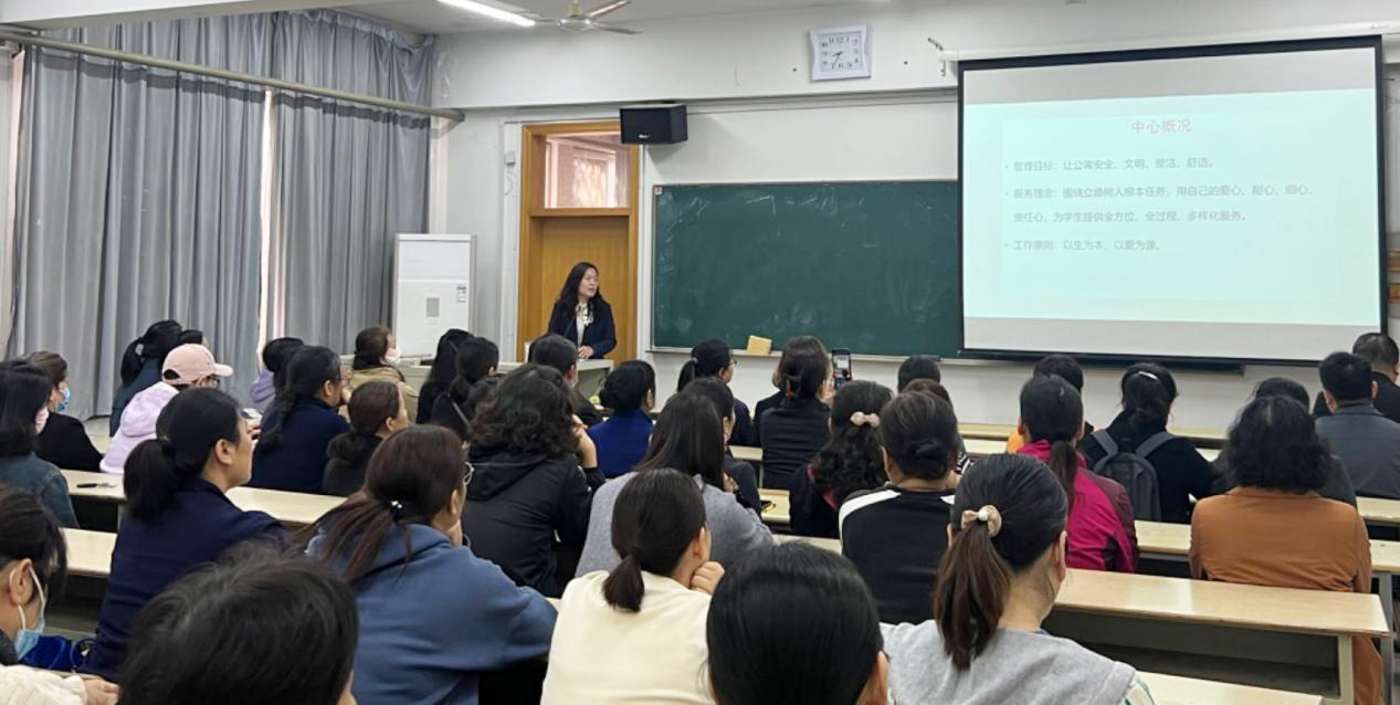 为进一步增强员工岗位责任意识,提高学生公寓服务质量,创建和谐、稳定的公寓住宿环境,10月20日上午8:30,学生公寓服务中心组织召开了2023年秋季学期学生公寓管理人员培训会,中心主管、值班员共计65人参加了培训。