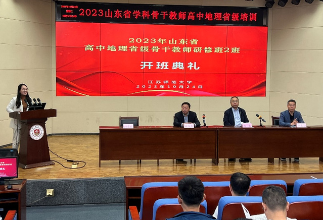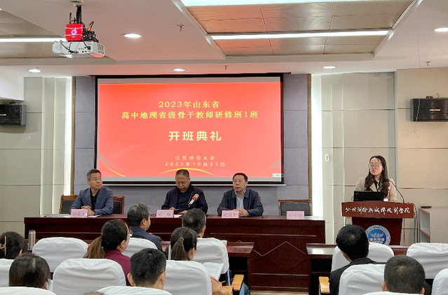 2023年10月22日上午和23日上午,山东省高中地理骨干教师培训班一班和二班开班典礼分别在9号楼1307和13号楼106举行。江苏师范大学教育科学学院党委书记张欣,地理测绘与城乡规划学院院长欧向军教授、首席专家郭春喜教授出席本次开班典礼,开班典礼由教育科学学院院长助理孙雪连主持。
