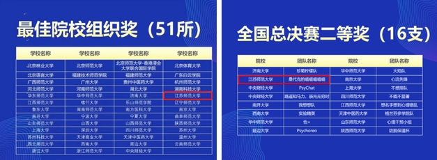 教育科学学院心理学系师生积极参与此次比赛,34名本科生与研究生组成了8支队伍参与了校内赛评比。校赛期间,学院组织专家进行匿名评审,最终确定“桑代克的喵喵喵喵喵”与“如鱼得水”两只队伍成功晋级东部赛区分区赛。在分赛区比赛中,两只队伍分别荣获一等奖、三等奖。