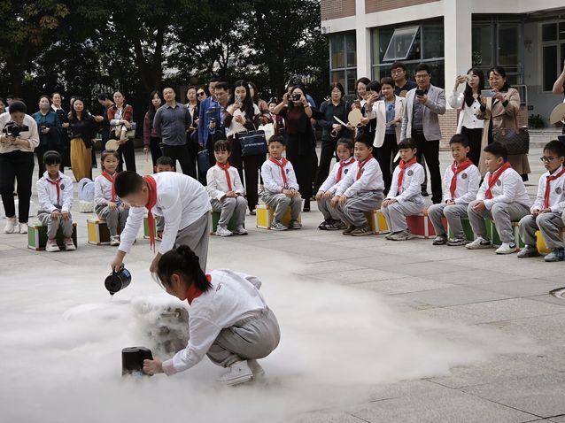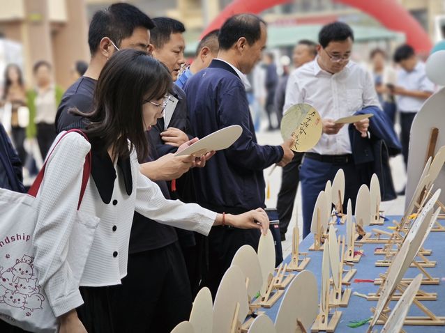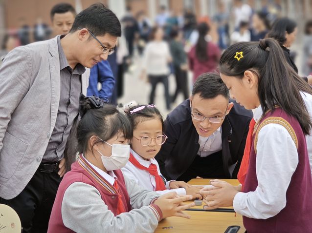 此次活动分为现场考察和汇报交流两个阶段。第一阶段与会人员观摩了剪纸、杯子舞、衍纸、乐器制作、扎染等特色社团课程,演讲与口才、情商教育等多彩校本课程,以及科技节活动。剪纸课上的美丽作品、演讲课上的自信展示、合唱社团的动听歌唱、情商课上的真实分享……丰富的课程和多彩的活动给参与观摩的老师留下了深刻的印象。科技节的精彩实验同样吸引了老师们的目光,他们走入学生中间,颇有兴致地观看学生们做实验。大家不时发出感叹,还细心询问学生们做实验的原理,动手进行体验,感受科技的魅力。