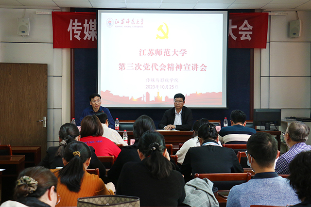 10月25日下午,传媒与影视学院召开贯彻落实校第三次党代会精神专题学习会,院领导班子成员、全体教职工出席会议,院党委书记赵永前作校第三次党代会精神宣讲。
