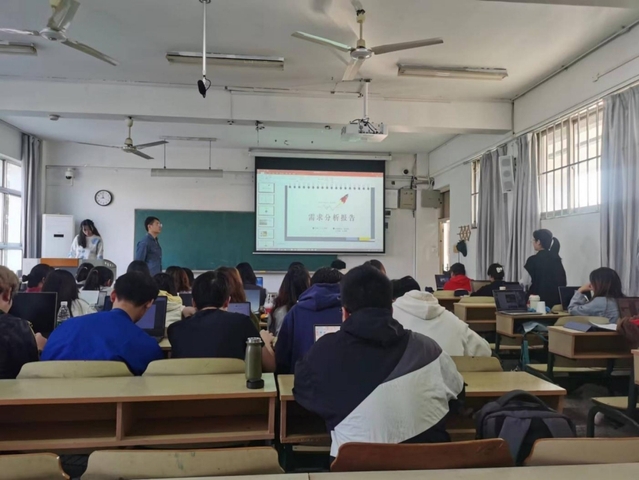 本次公开课的教学形式是同伴互评。按照抽签顺序,本节课由第十二小组和第六小组进行课题汇报,分别介绍了交互式教育APP--《悦读》和交互式教育网站--《英语四六级学习应用网站》的需求分析报告。小组汇报结束后,授课教师组织同学们进行同伴互评,包括全体同学在线评价、小组之间交流互评、以及组内成员自我评价等多种形式。最后,授课教师进行总结评价、汇报小组进行反思和改进。