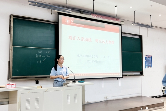 为帮助新生尽快融入大学生活,掌握学生党员发展和《学生手册》的相关知识,9月14日下午,化学与材料科学学院党委秘书李洁老师为我院全体新生开展了一场以“端正入党动机,树立远大理想”为主题的讲座,并为同学们进行了《学生手册》重点导读。