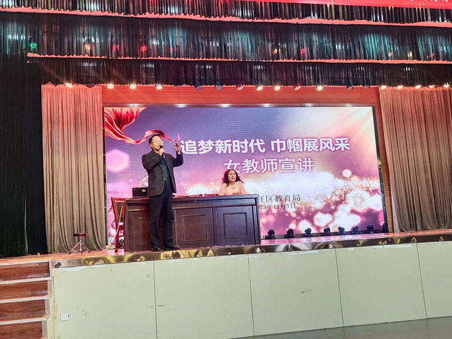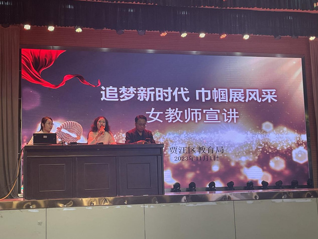 11月1日下午,“追梦新时代 巾帼展风采”贾汪区教育系统女教师宣讲会在江苏师范大学附属实验学校初中部报告厅隆重召开。此次会议由区教育局妇委会组织,师大附实校初中部妇委会承办。局妇委会主任田媛媛带队,初中部副校长宦海亮和来自贾汪城区中小学校的400多名女教师参加了本次活动。