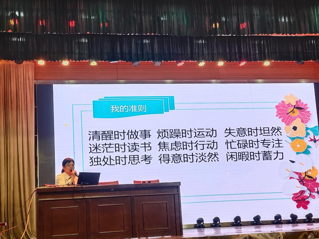 徐翠梅老师的报告题目是《生命自有芳华》。她用自己的亲身经历和在场听众坦诚交流。一个个与孩子共处的情景,一次次贴心地帮扶……徐老师讲述了自己从农村中学的点点滴滴,到城区学校的时时刻刻。她与学生共处,与学生共情;把学生的事,把学校的事看做自己的事;为学生办好事,为学校办好事,她“苦心不入”,乐观上进,她正是新时代女教师的代表。