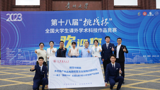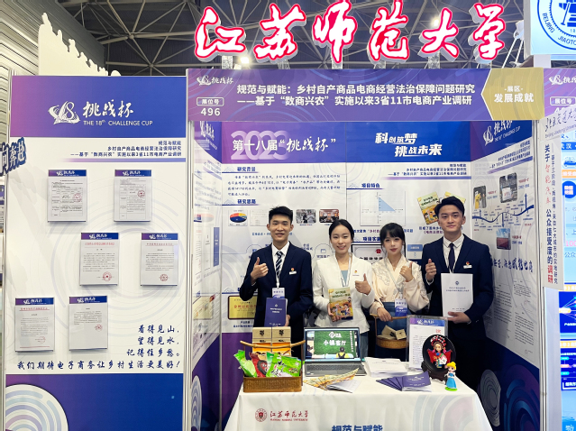 经过激烈角逐,法学院由步睿同学负责,张翌晨、史牧宸、周雨婷、潘星雨、余珺扬、左城炜同学参与,陈清、张春艳、刘恺老师指导的作品《规范与赋能:乡村自产商品电商经营法治保障问题研究——基于“数商兴农”实施以来3省11市电商产业调研》斩获主体赛特等奖。这是法学院首次获得“挑战杯”全国大学生课外学术科技作品竞赛最高奖——特等奖,实现了重大突破,更创造了江苏师范大学哲学社会科学类作品参与该项赛事主体赛的历史最好成绩。