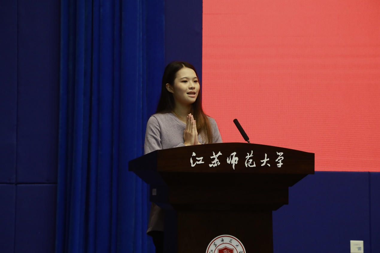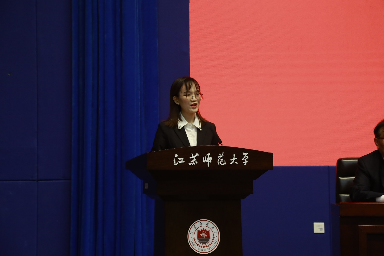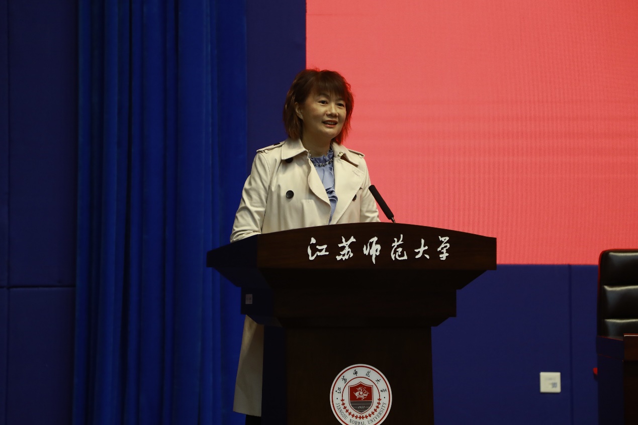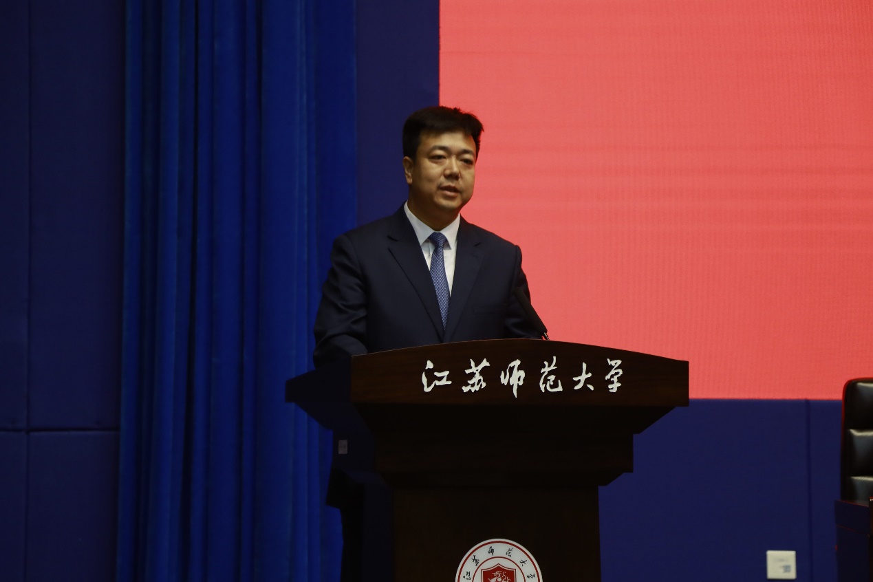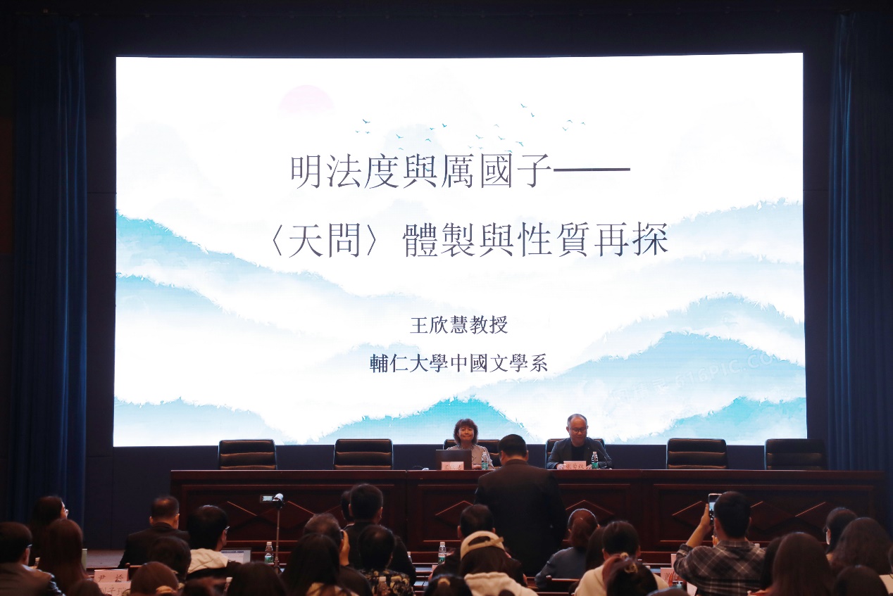 娄峥嵘在开幕式上表示,本次联吟大会不仅仅是两所大学、两家诗社长久情谊的延续,更是两岸同胞精神血脉的联结和心灵家园的皈依。通过本次活动,两校间的友谊必将进一步加深,同时也期待这项活动能够越办越好,继续扩大影响,吸引更多的青年学子参与其中,为传承和发扬中华优秀传统文化汇聚更多有生力量。徐州市人民政府台湾事务办公室主任姜明、台湾辅仁大学中国文学系主任王欣慧、江苏师范大学文学院教授朱存明、辅仁大学东篱诗社社长林思妤、江苏师范大学悠然诗社社长张熘分别发言。随后王欣慧教授作了题为《明法度与厉国子——<天问>体制与性质再探》的学术报告,并与文学院师生进行交流。