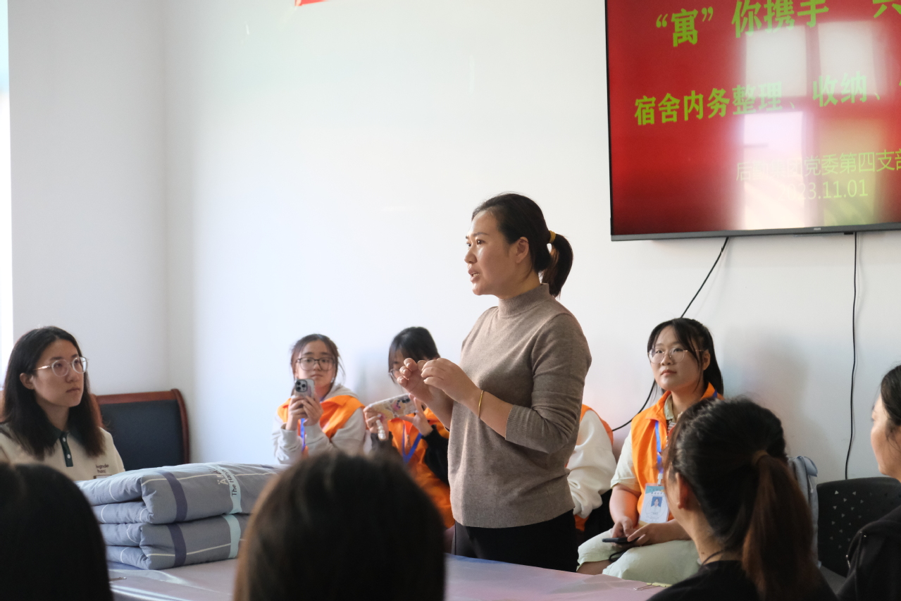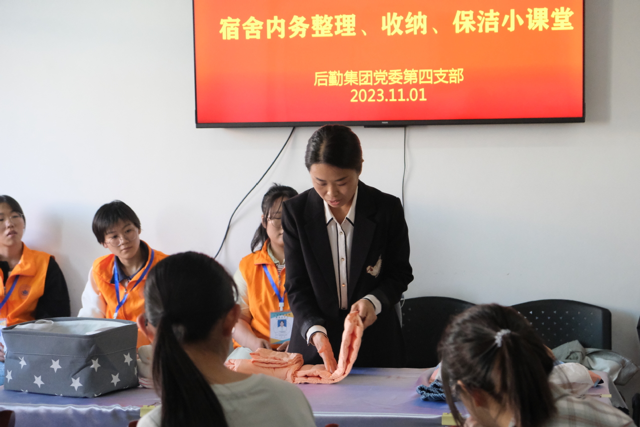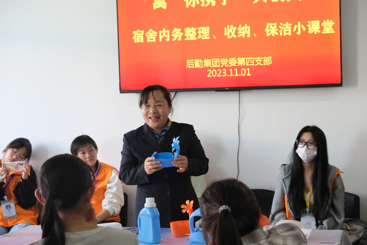 为贯彻落实校第三次党代会精神,抓好服务育人、劳动育人落地见效,推进集团党委“党建进公寓提质增效工程”,11月1日后勤集团党委第四党支部组织开展了以“寓”你携手,共创文明为主题的宿舍内务整理、收纳、保洁小课堂主题活动。后勤集团党委书记蒋国杰受邀与来自各学院30名学生党员代表、入党积极分子、大一新生代表一同参与活动。