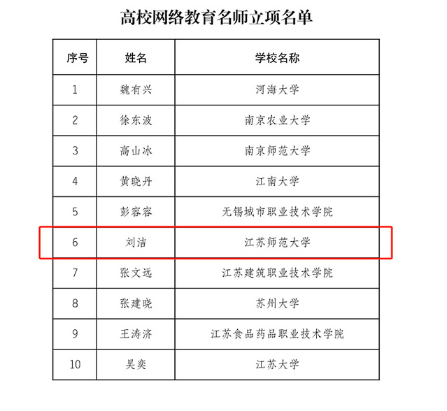 近日,由省委教育工委、省教育厅组织开展的第二批江苏高校思想政治工作质量提升工程建设项目申报立项遴选结果公布。在此次遴选中,我院党委副书记刘洁荣获高校网络教育名师立项。