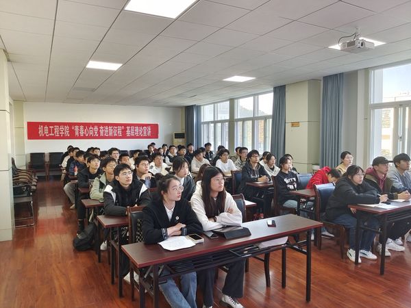 为深入学习贯彻习近平新时代中国特色社会主义思想和党的二十大精神,切实用党的创新理论武装青年,2023年11月7日,机电工程学院组织开展以“青春心向党 奋进新征程”为主题的基层理论宣讲活动。本次基层理论宣讲活动邀请学生党员、团学干部、先进青年典型、团干部思政技能大比武获奖教师等担任主讲人,进一步用“青言青语”激励工科青年坚定理想信念,锚定青春航向。