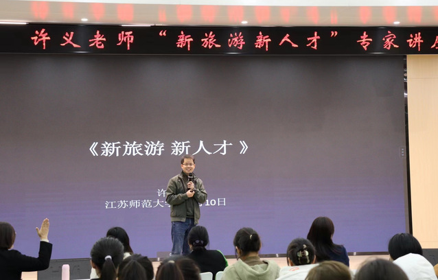 许义老师结合自身在携程旅行、同程旅行工作,以及成为知乎、在行旅游互联网领域旅游互联网产品设计、用户运营和资源营销专家的成长、创业经历,从三个方面与同学们进行了分享。首先,他从“专业、择业、就业、创业”四个维度分享了个人成长的关键词—喜欢、坚持、投入、能力素养和少年心态。其次,分析了在“大文旅”的时代背景下,“旅游+”带来的旅游岗位需求和人才能力模型的新变化。最后,作为“青年旅游人才成长计划”发起人,提出要以新人才服务于新旅游需要。许老师认为一个人未来成就的大小更多地取决于信息差、认知差和能力差,报告中他从发邮件和写简历等案例入手,鼓励同学们做好校园和职场之间的思维转换,努力培养作为未来文旅操盘手的职业思维,实现自我价值,适应职业生涯的挑战。