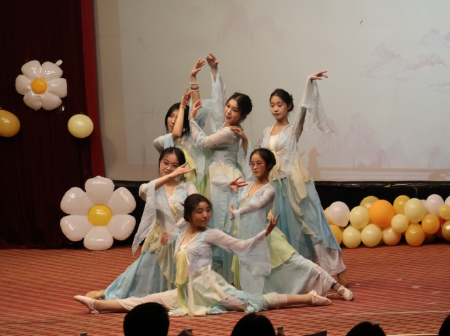 第二篇章“抒意气·同舟共济”,飞舞艺术团的舞蹈《Cake》点燃了现场的氛围和观众的热情,在这充满激情的气氛中,沈唯缘、丁薇、徐卿三位同学的歌曲《New boy》《浪漫血液》《身骑白马》让所有人都经历了一场视听盛宴。轻步曼舞,民族风采,飞舞艺术团的舞蹈表演《西域少女》更是让观众们领略到了神秘、幽美的西域风情。慷慨激昂的朗诵《我喜欢出发》则燃起了同学们的青春激情,为同学们注入了满满正能量。