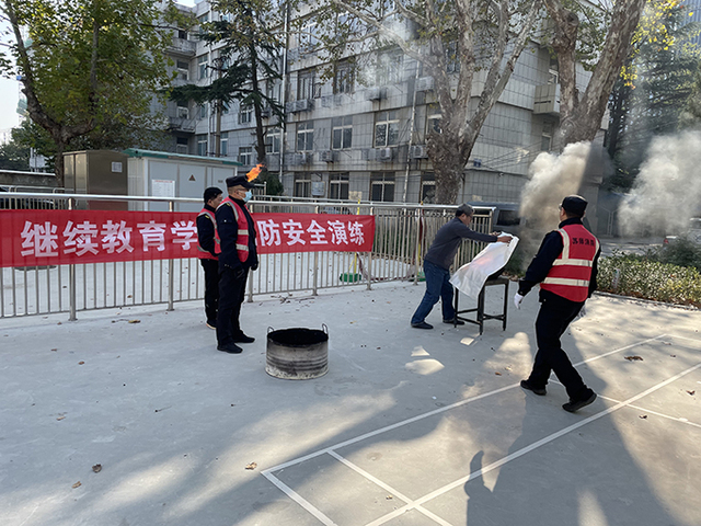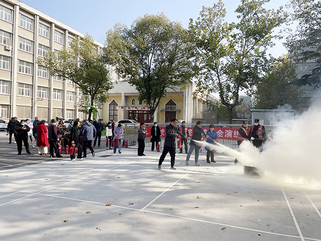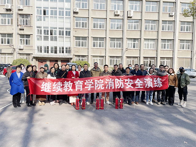 11月14日上午,继续教育学院在奎园校区教学楼南侧小操场开展消防安全演练。校保卫处副处长巩岩,学院党总支书记蒋步仲、院长张林,以及学院全体教工参加了演练。