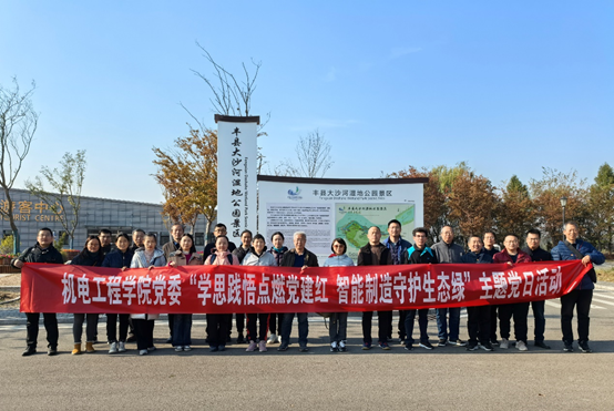 11月12日,机电工程学院党委组织全体党员赴丰县大沙河湿地公园开展“学思践悟点燃党建红 智能制造守护生态绿”主题党日活动。