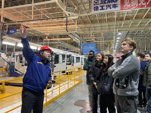 首先,全体党员带领留学生们前往徐工集团,先后参观了企业展厅、产品展厅以及总装分厂装配车间,了解了徐工汽车传承大器文化、产业报国的奋进历程,近距离观看徐工汽车的智能生产线,大家深深为徐工汽车的智能化折服,不时驻足拿起手机合影留念。